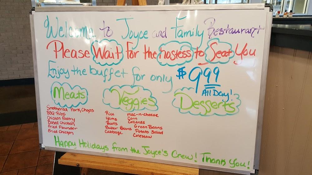 Joyce & Family Restaurant offers a rich and varied menu featuring traditional Southern cuisine. Popular options include fried chicken, BBQ chicken, and fish dishes like flounder and whiting. Each dish is made from scratch, focusing on fresh ingredients that highlight southern cooking.